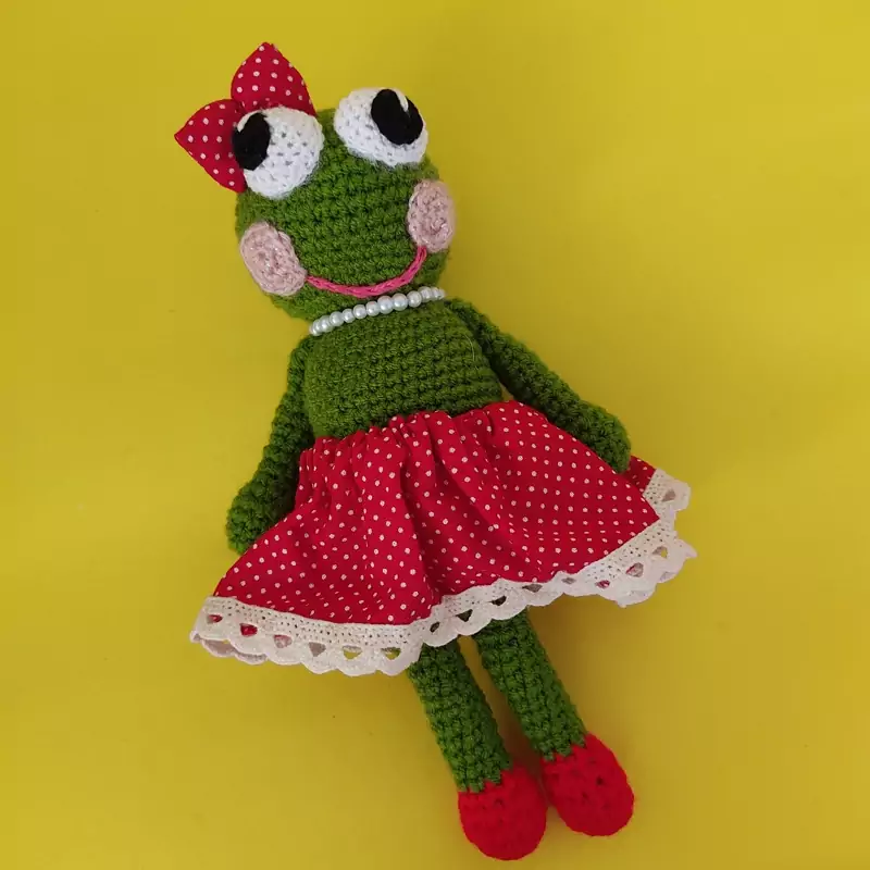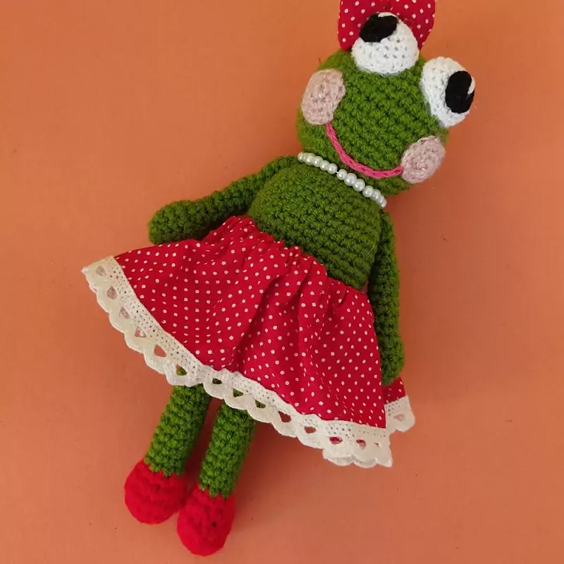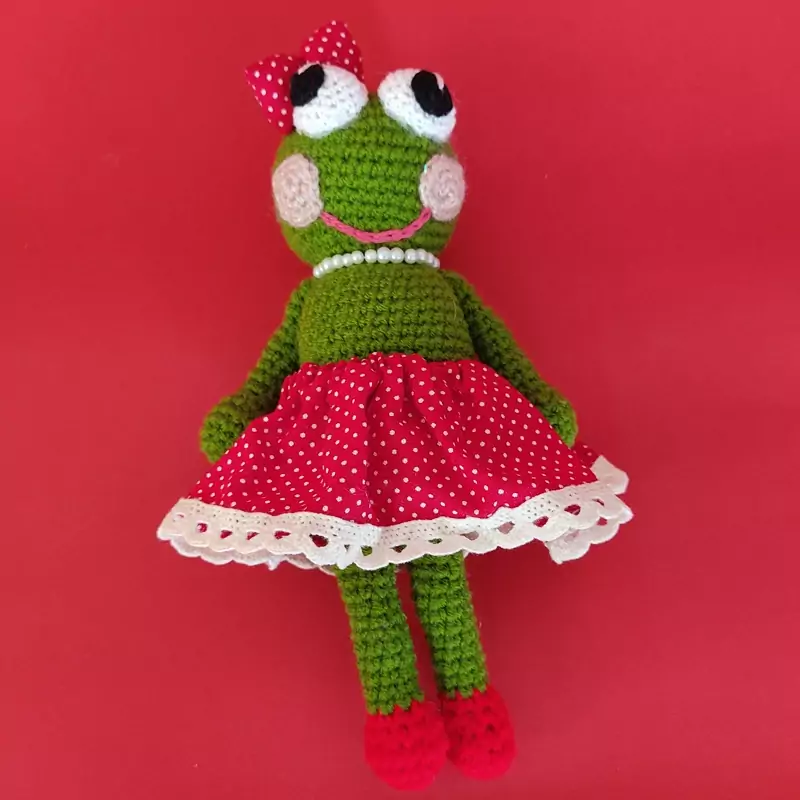 عروسک خاله قورباغه دستباف تهیه شده از کاموا درجه یک اکریل بافت